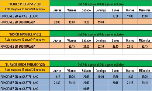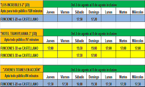 CARTELERA "CINEMA PERGAMINO" - Semana del 2 al 8 de agosto